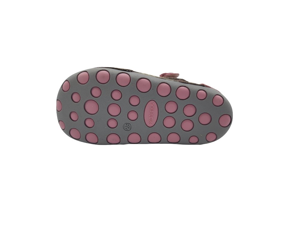 Kožené sandály Protetika Flip jsou měkké a pohodlné letní sandály, které jsou vhodné pro menší děti bez opatku. Díky přetažení gumy v přední prstové části je špička chráněna před okopáním. Mají vyjímatelnou koženou stélku.