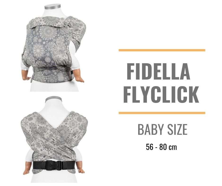 FlyClick je hybridní ergonomické nosítko s bederním pasem zapínaným oboustranně dotahovanou bezpečnostní přezkou. Jeho dlouhé vázací ramenní popruhy jsou široké přibližně jako polovina šířky samotného šátku a do poloviny šíře měkce polstrované. Křížením popruhů přes zadeček dítěte můžete ještě zvýšit nosnost a pohodlnost při nošení těžších dětí. Vyrábí se ve dvou velikostech - FlyClick Baby a FlyClick Toddler (Plus).