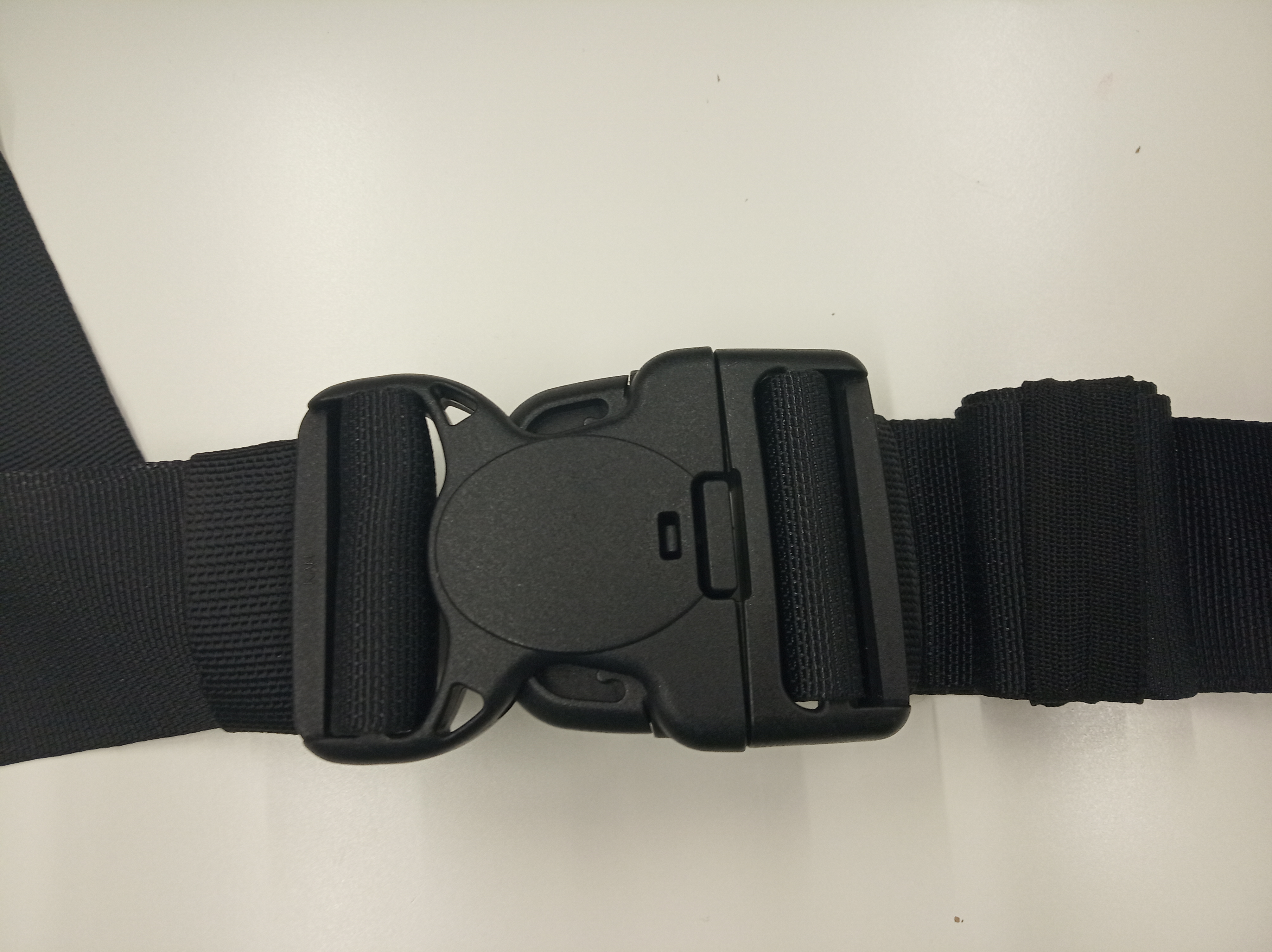FlowClick patří do kategorie kombinovaných (hybridních) nosítek, má měkký bederní pás zapínaný plastovou přezkou, která je obousměrná. To znamená, že ji můžete dotahovat vlevo i vpravo směrem k polstrování bederáku, ale můžete ji ponechat i uprostřed. Přezka je opatřena bezpečnostní pojistkou a na konci černých popruhů jsou gumičky sloužící k zajištění smotaných přebytečných částí popruhů.
