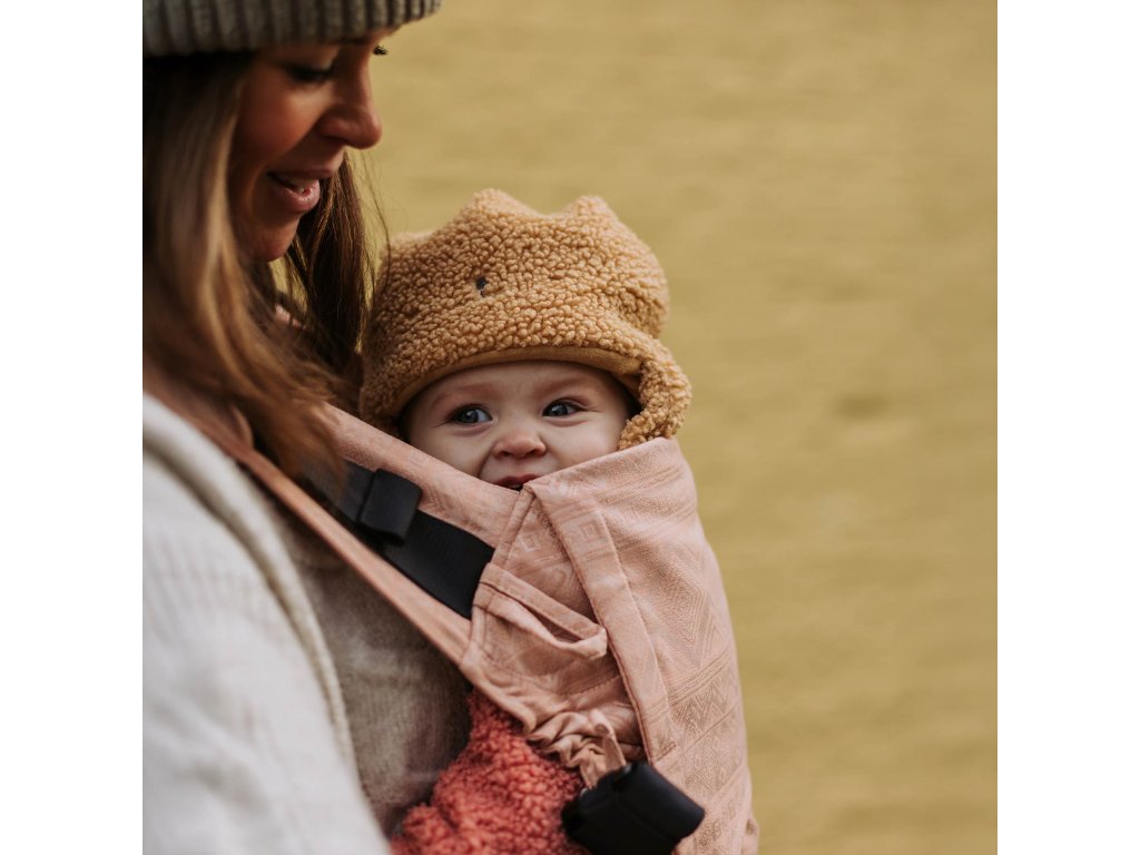 Je ušito ze tkaného šátku což zaručuje jeho poddajnost, měkkost a zároveň nosnost.