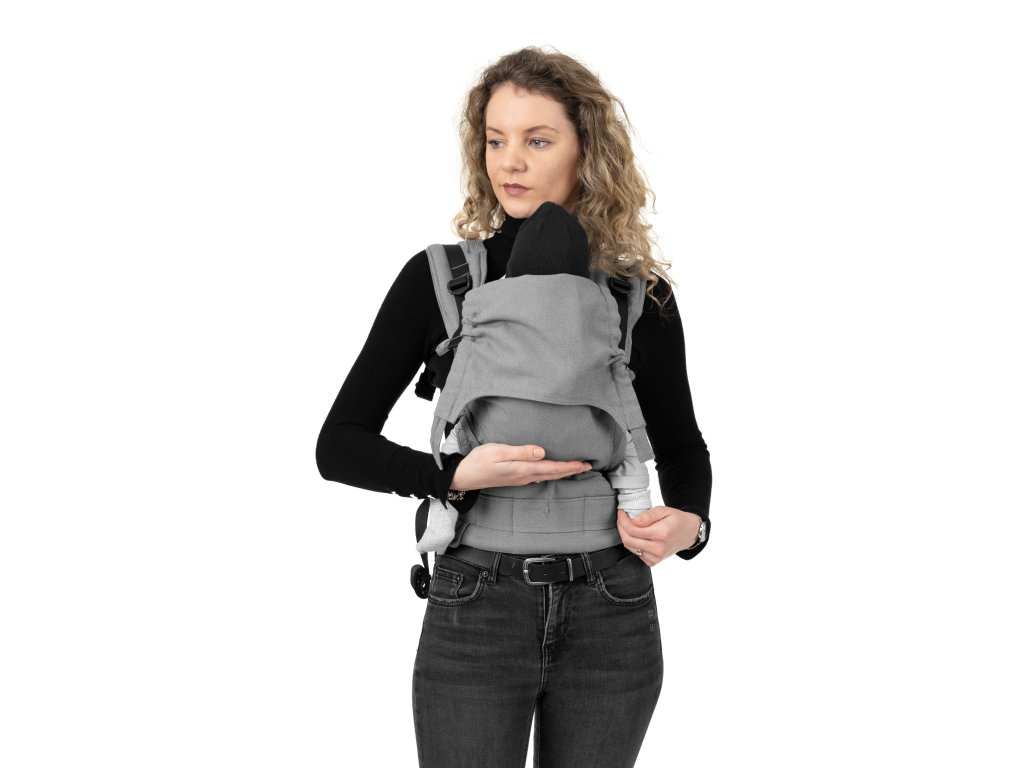 Toto ergonomické nosítko má měkký bederní pás s plastovou přezkou se zapínáním na boku a pro zvýšení bezpečnosti je zde opatřený i jistící gumičkou, skrze kterou se přezka provleče. Ramenní popruhy nosítka Fusion Baby jsou měkce polstrované a mají dvě možnosti zapínání:
