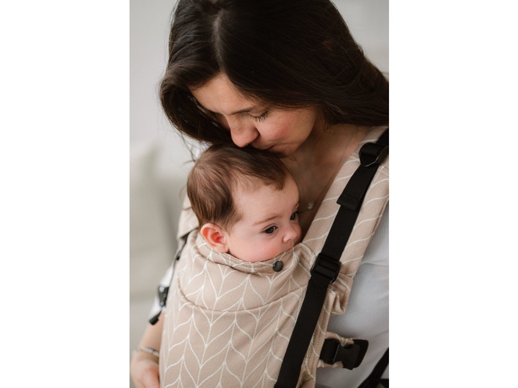 Nosítko je dodáváno s kapucí, která se používá v případě, že dítě usne pro zajištění hlavičky. Kapucka se zajišťuje pomocí gumiček za spony, které jsou umístěny na ramenních popruzích. Kapucku je možné odepnout.