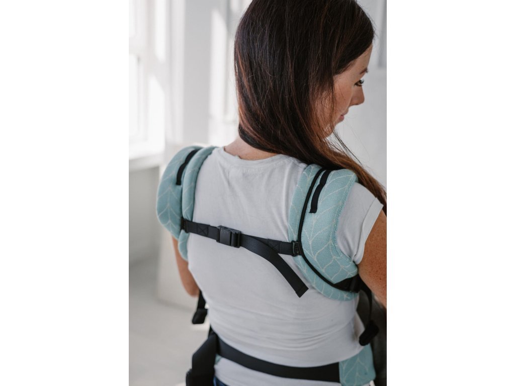 Jedná se o plně rostoucí celopřezkové nosítko (Full Buckle), které vás provede celým nosicím obdobím. Je navrženo tak, aby dokonale sedělo od cca 1 - 2 měsíců (4,5 kg) až do 2 - 3 let. Součástí nosítka je i odepínací kapucka, která se používá k jištění hlavičky u spícího dítěte. Kapucka se zajišťuje pomocí šňůrek za spony, které jsou umístěny na ramenních popruzích.