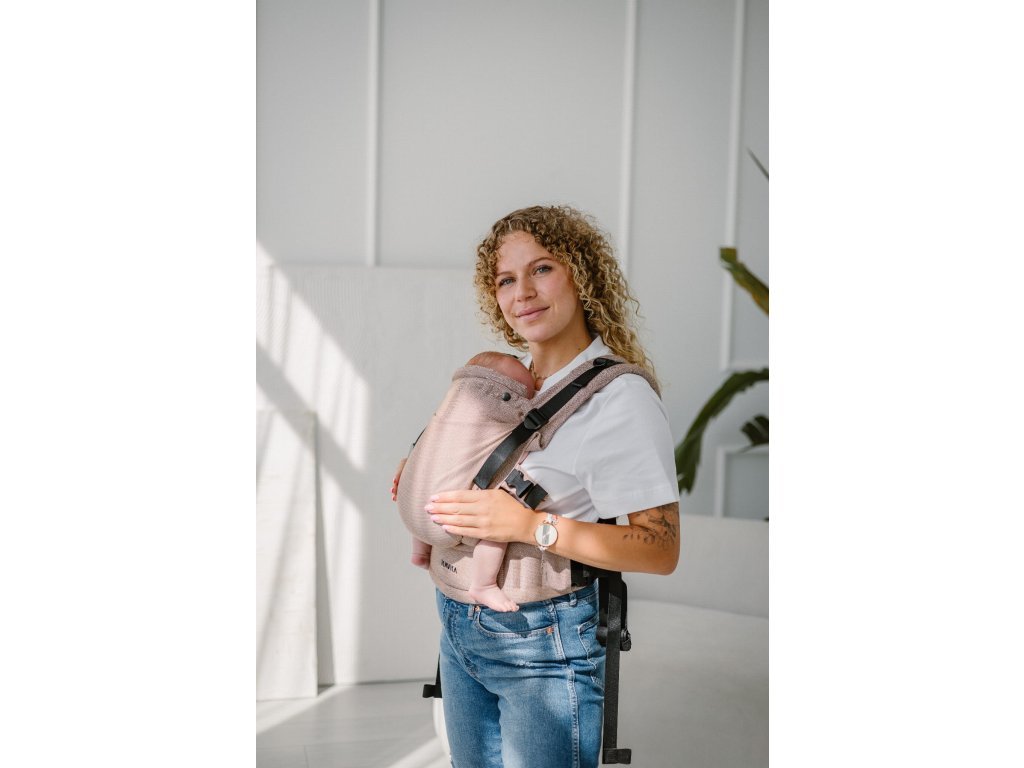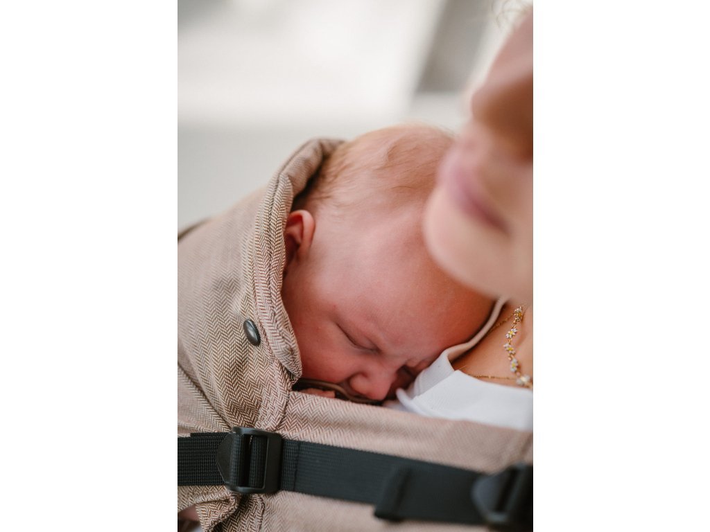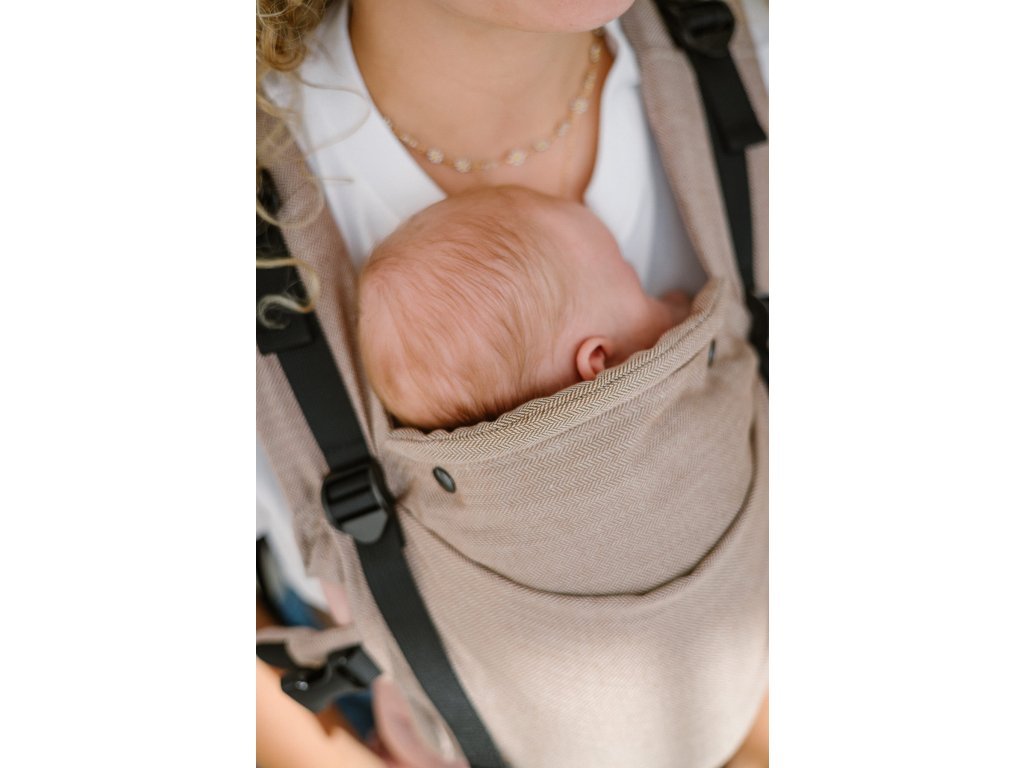 Jedná se o plně rostoucí celopřezkové nosítko (Full Buckle), které vás provede celým nosicím obdobím. Je navrženo tak, aby dokonale sedělo od cca 1 - 2 měsíců (4,5 kg) až do 2 - 3 let. Součástí nosítka je i odepínací kapucka, která se používá k jištění hlavičky u spícího dítěte. Kapucka se zajišťuje pomocí šňůrek za spony, které jsou umístěny na ramenních popruzích.